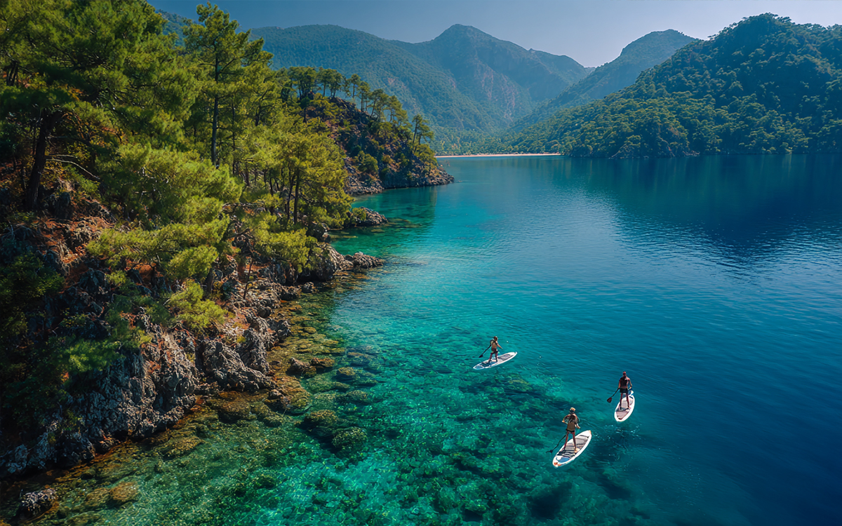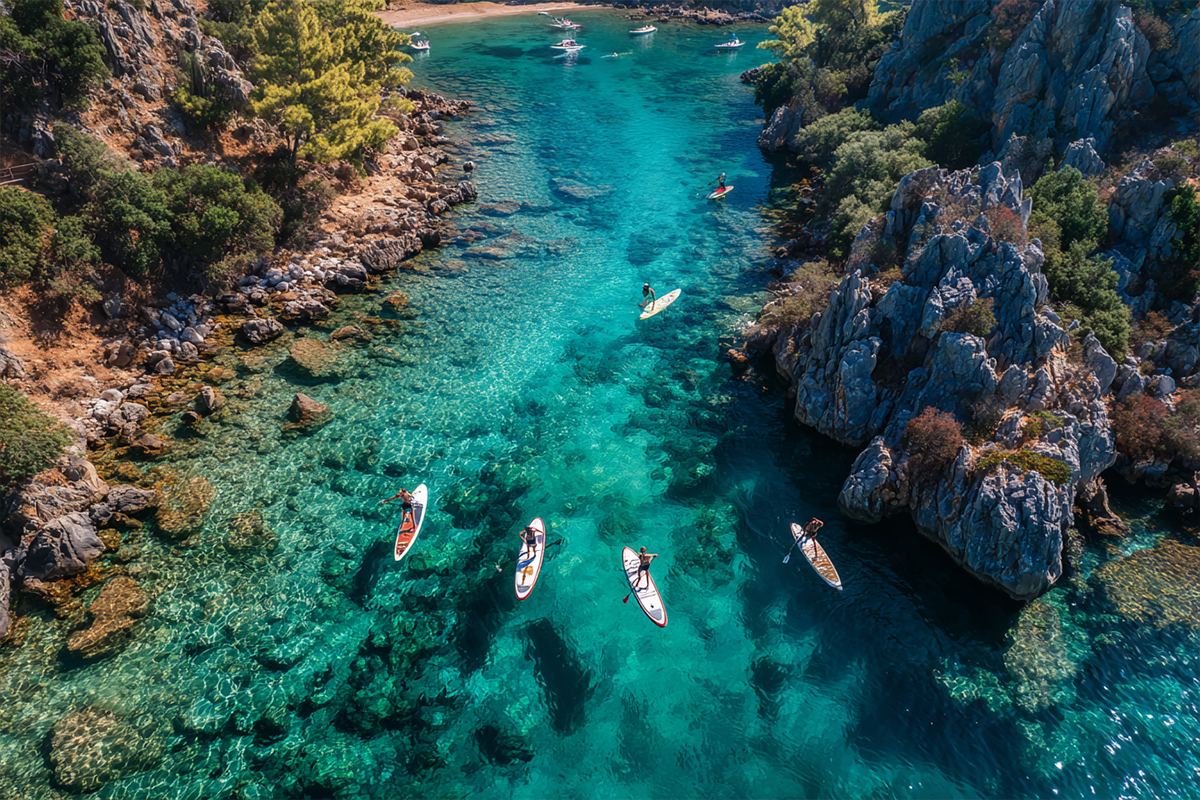 Entdecke die schönsten Gewässer für dein nächstes SUP-Abenteuer an der türkischen Küste.